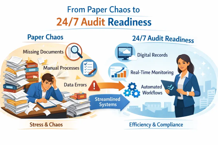 spreadsheets, manual logs, and audit stress. Be inspection-ready every day with
